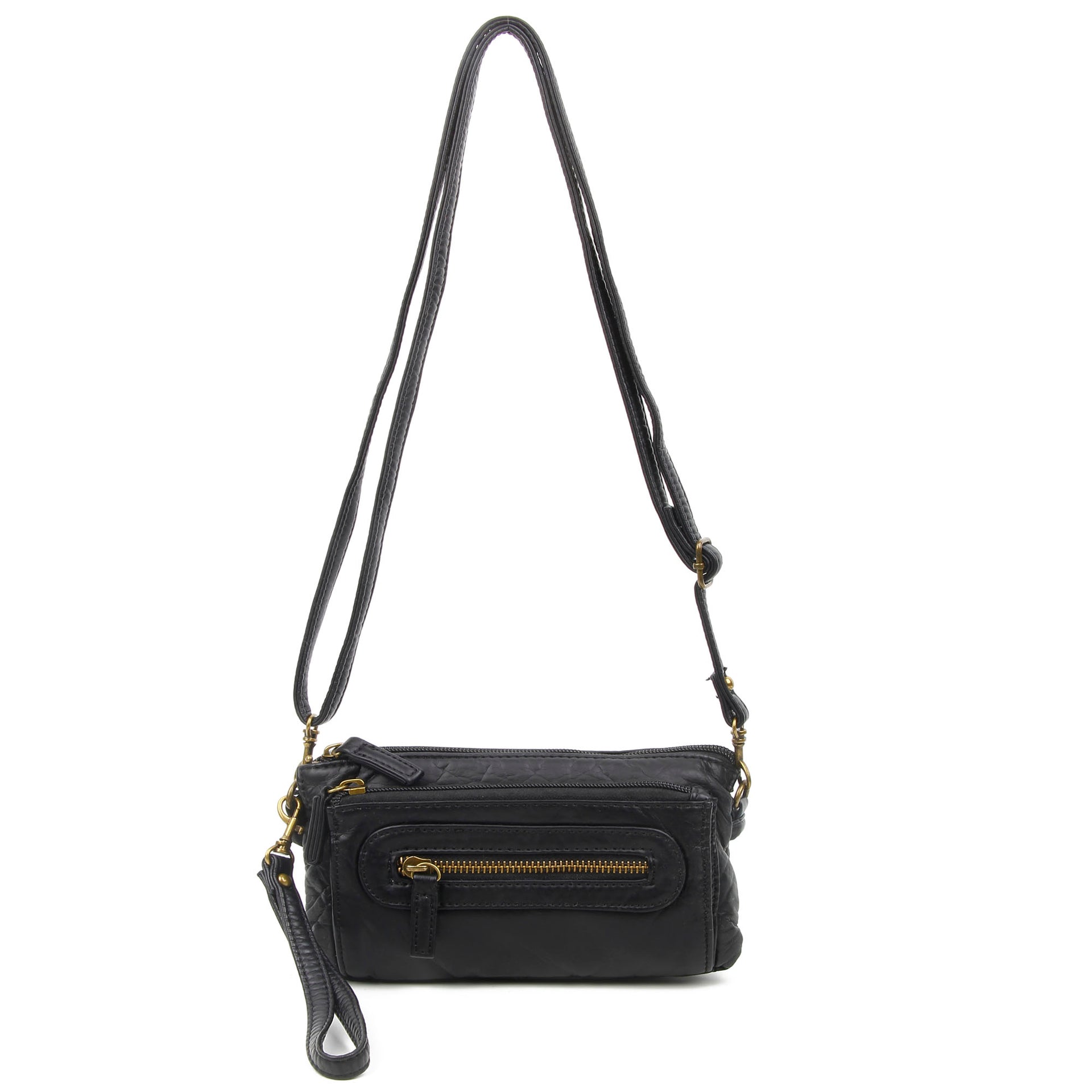 - Three-way bag (wristlet, clutch, crossbody)