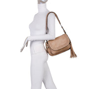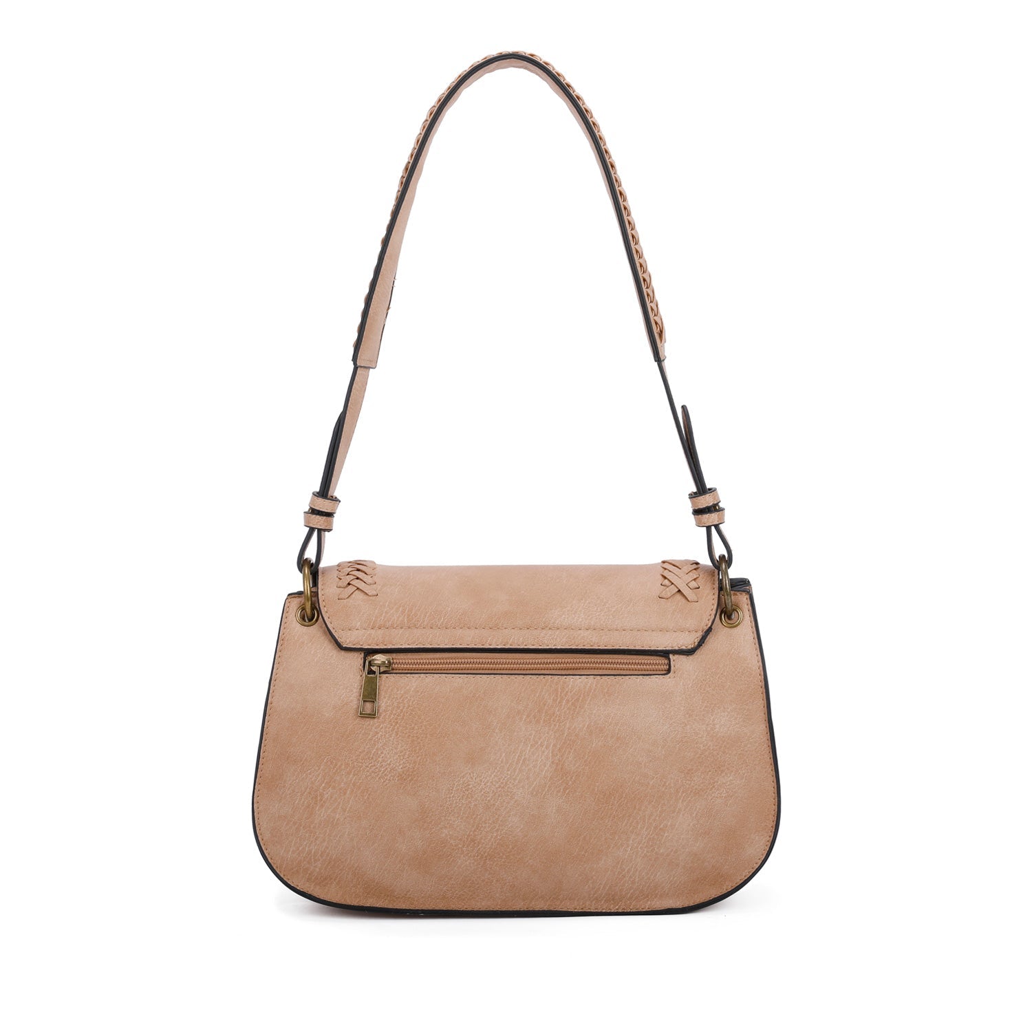 The Ampere Creations Alice Saddle bag is made from our new signature vegan leather and features one of our finest and highest quality of faux leather that we have sourced. Accented with durable brass hardware and our new stylish tassel, this saddle has a secure zip top closure with a flap and a small open pocket to keep your daily essentials from falling out. The saddle also features one interior slip pockets with a back zipper. In addition, the saddle is part of our braided collection which gives the bag a classic and yet stylish look.